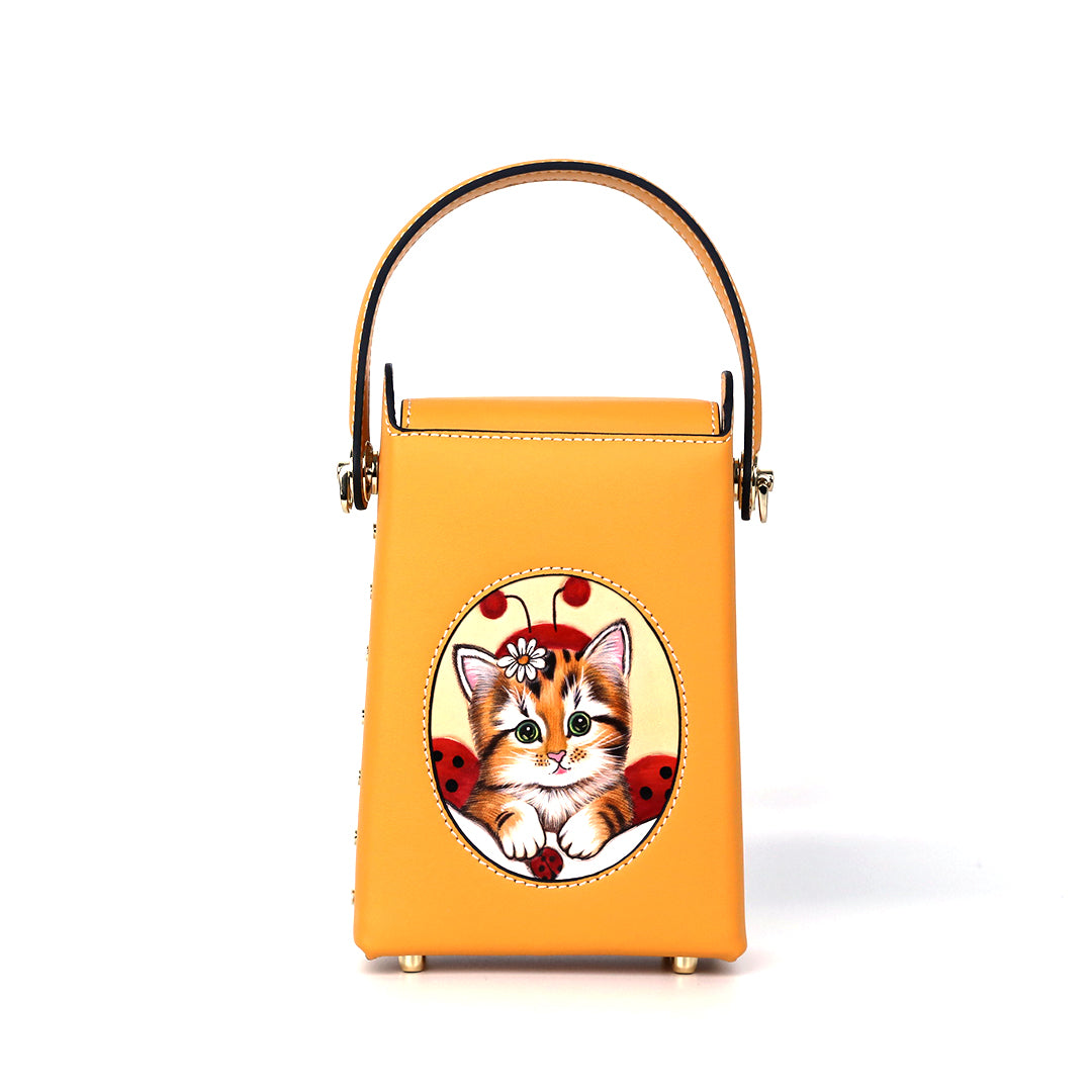 Orange Cat Leather Carving Pattern Handmade Crossbody Phone Bag