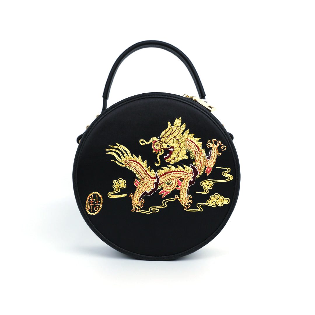 Round Embroidery Handmade Crossbody Bag - Golden Dragon